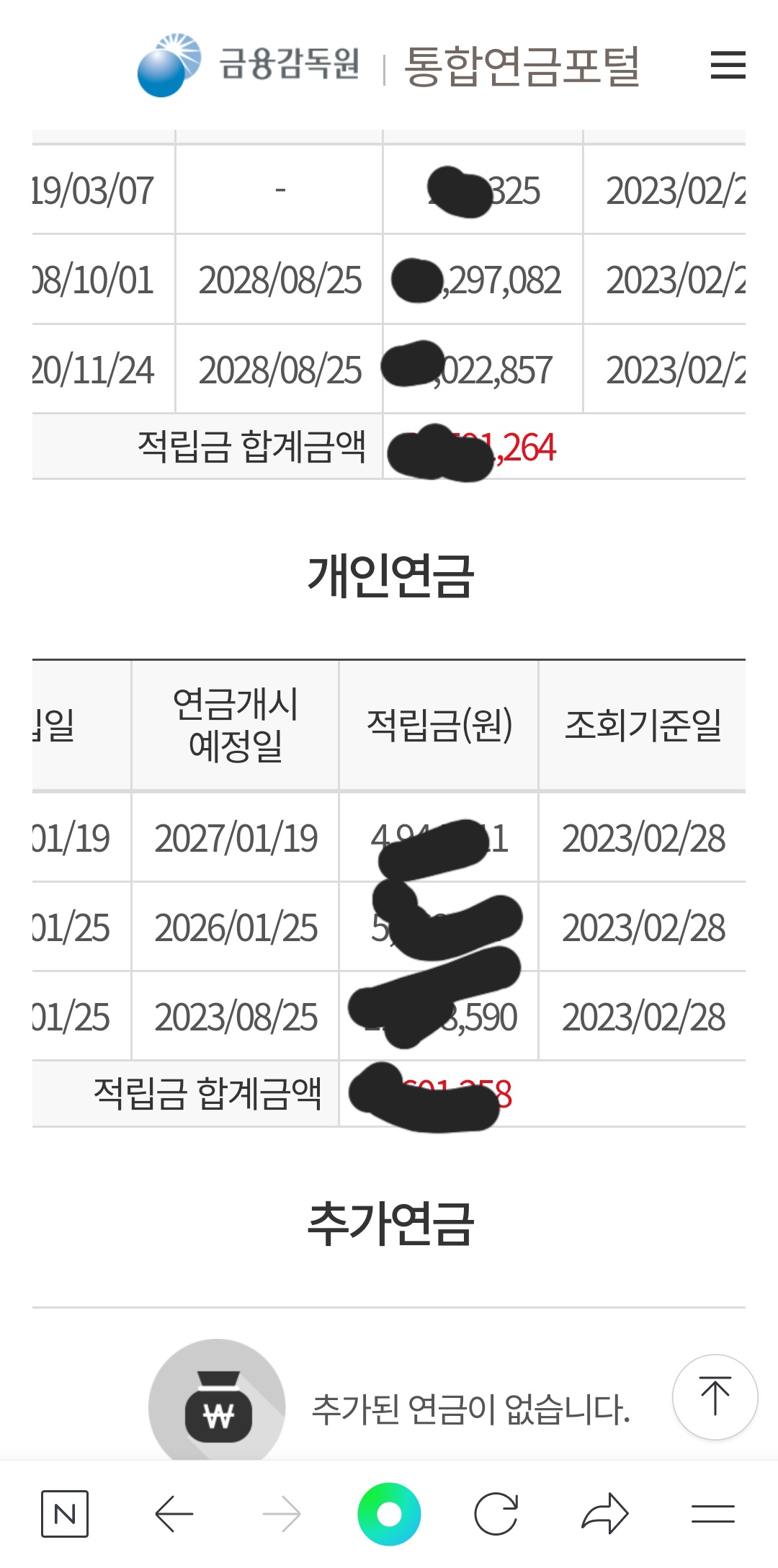 ♤ 국민연금, 노령연금, 개인연금을 연금통합포털에서 불러와 현재의 재정상태를 알아보세요.