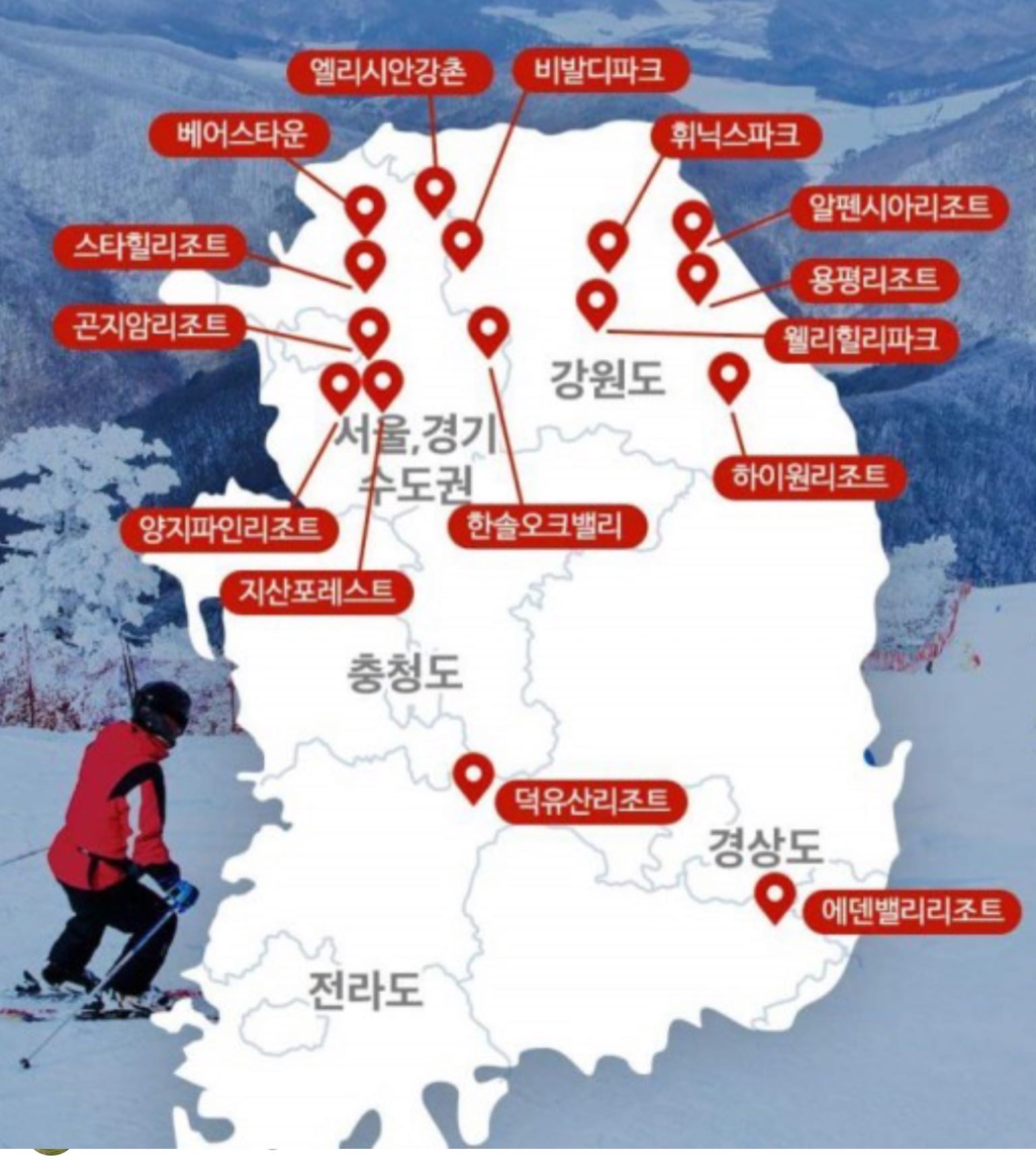 스키장 개장 및 폐장시간은 스키장 위치, 기상조건, 운영정책에 따라 다르기 때문에 일반화하기 어렵다. 단, 동절기에는 보통 12월 중순부터 3월 중순까지 운영되며 날씨나 기타 사유로 인해 영업시간이 변경될 수 있습니다.
