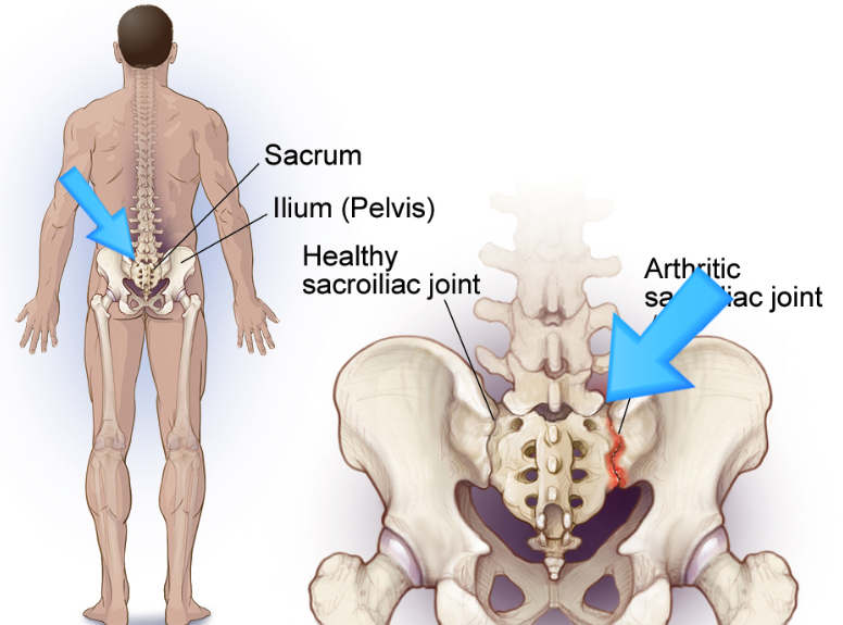 천장관절은 골반의 좌우측에 있는 골반뼈와 천골을 연결하는 관절입니다. 이 관절의 문제는 천골에 통증을 유발할 수 있습니다. 긴 척추를 골반까지 무너뜨려 안정성을 높여주는 관절입니다. 근육과 인대가 단단히 연결되어 있기 때문에 트러블이 잘 생기지 않습니다. 주변 인대가 손상되면 관절이 불안정해져 허리, 엉덩이, 허벅지 주변에 통증을 유발할 수 있다.